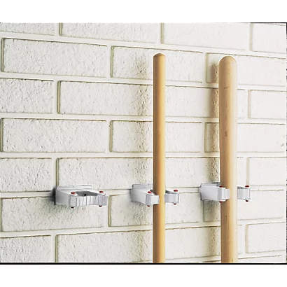 Se fixent directement au mur avec 2 vis (fournies) ou sur rail Toolflex en alu : 3 crochets pour rail de 50 cm, 5 crochets pour rail de 90 cm .
