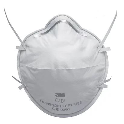 Masque facial filtrant FFP1 sans soupape, élastiques synthétiques.