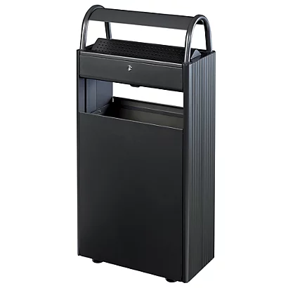 En acier poudré anti-UV et profilés aluminium. Grille écrase mégots en inox.
