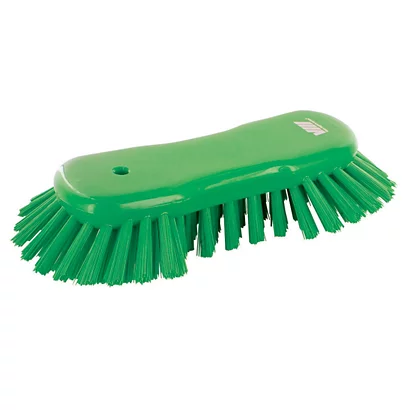 Brosse fibres dures longueur 33 mm. Adaptée aux surfaces rugueuses difficiles à nettoyer : bandes de transport dans les pêcheries ou billots dans les boucheries. Résistance 130°C. En polyester 0,50 mm, dim. 70 x 200 mm. Coloris vert.
