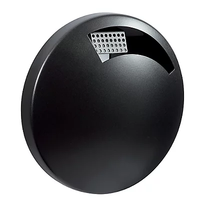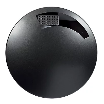 En acier poudré anti-UV, coloris gris manganèse. Vidage par décrochage et retournement. Grille écrase mégots. Fixation murale 2 points (visserie non fournie)