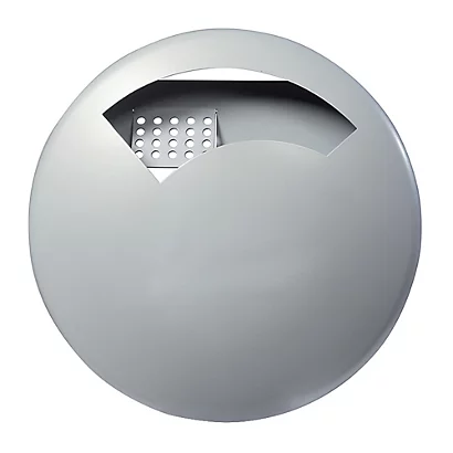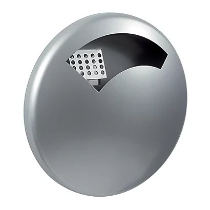 En acier poudré anti-UV, coloris gris métal RAL 9006. Vidage par décrochage et retournement. Grille écrase mégots. Fixation murale 2 points (visserie non fournie)