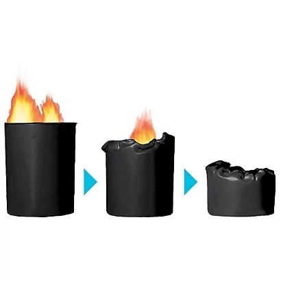 En cas d’incendie, la corbeille se consume sur elle-même en fondant. Le feu, privé d’oxygène, s´éteint.
