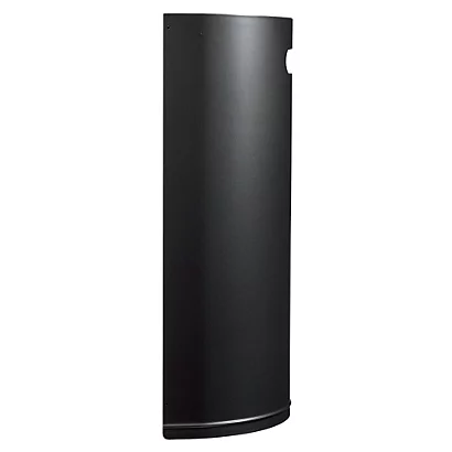 Tôle ép. 8/10e en acier traité anti-corrosion poudré avec revêtement époxy. Fond perforé pour évacuation des eaux de pluie. Fermeture par loquet sous la corbeille, antivandalisme (verrouillage possible par cadenas). Fixation murale 3 points ou sur poteau ( en option) pour 1 ou 2 corbeilles (placées dos à dos). Dim. : L. 40 x P. 21,5 x H. 66 cm.