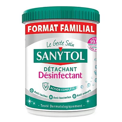 En effet, ce détachant désinfectant Sanytol élimine les taches tenaces et les microbes responsables de mauvaises odeurs imprégnées sur le linge.
