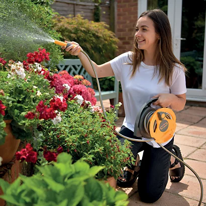 Ce micro enrouleur compact avec 10 m de tuyau intégré offre une facilité d’arrosage pour les petits jardins ou terrasses.