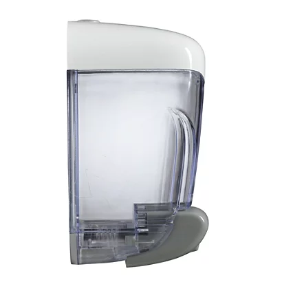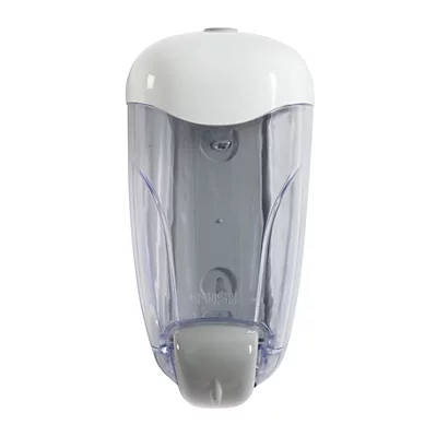 En matière plastique ABS avec additif antistatique et résistant Accepte tout type de savon, y compris le gel hydroalcoolique (sauf microbille) Réservoir amovible transparetn de 0,8L Système anti-goutte avec joint en silicone Verrouillage par serrure à clé Dimension : 110x115x200 mm