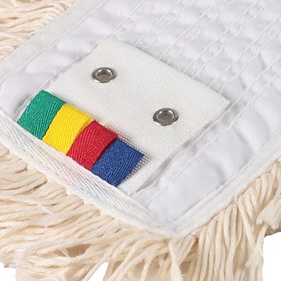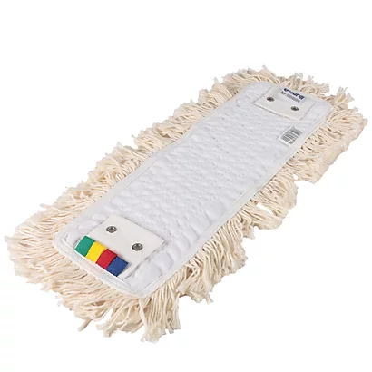 Frange en polycoton résistant et absorbant idéale pour le lavage à plat pour tous les types de sol. Frange mixte pour système à poches ou à languettes.