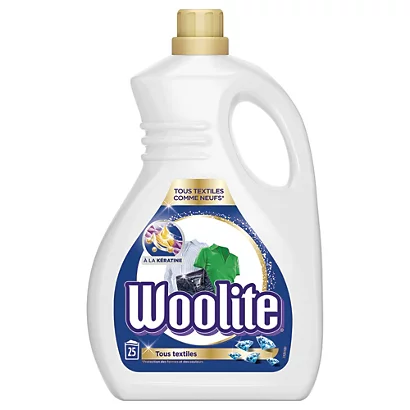 La lessive liquide Woolite est disponible en flacon de 1,5 L ce qui équivaut à 25 lavages.