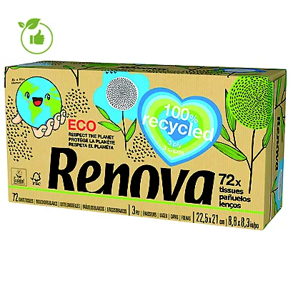 Mouchoirs en papier conçus avec des fibres recyclées, 3 épaisseurs.