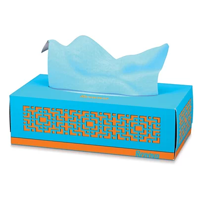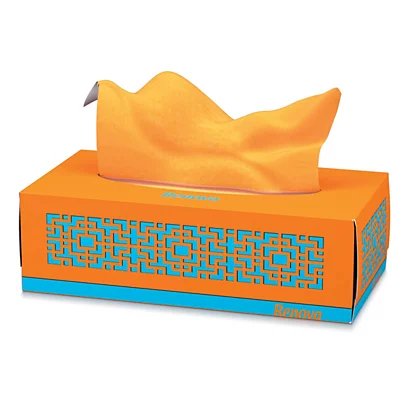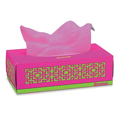Ces mouchoirs Renova Red Label sont fournis dans une boîte rectangulaire colorée et design.