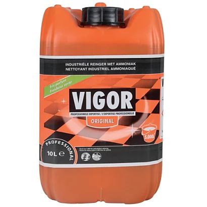 Le nettoyant ammoniaqué Vigor est un détergent surpuissant liquide et concentré spécialement conçu pour nettoyer et dégraisser à fond vos surfaces lavables, notamment les salissures les plus difficiles à éliminer. Il élimine ainsi les taches les plus tenaces (graisses végétales, animales ou encore minérales) et est donc à ce titre particulièrement performant au sein de milieux industriels.