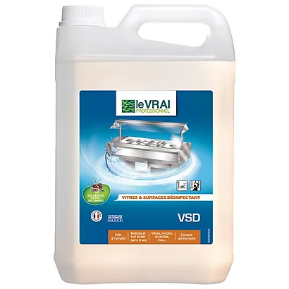 Un nettoyant désinfectant pour vitres et surfaces prêt à l’emploi, adapté au contact alimentaire (méthode HACCP).