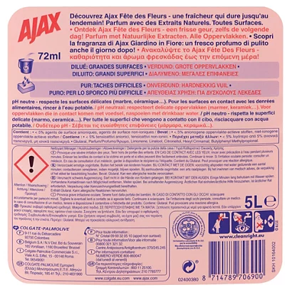 Autre atout, ce nettoyant Ajax Fête des fleurs offre 24 heures de fraîcheur parfumée sur vos surfaces après le nettoyage, bien plus que la plupart des autres produits du même type.
