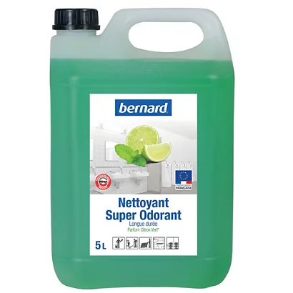 Le nettoyant surodorant Bernard est un détergent neutre surodorant sécurisé nettoyant et laissant une odeur de propreté pendant plusieurs heures après le nettoyage.