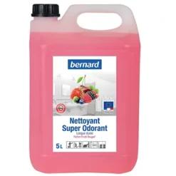 Le nettoyant surodorant Bernard est un détergent neutre surodorant sécurisé nettoyant et laissant une odeur de propreté pendant plusieurs heures après le nettoyage.