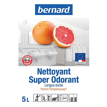 Le nettoyant surodorant Bernard est un détergent neutre surodorant sécurisé nettoyant et laissant une odeur de propreté pendant plusieurs heures après le nettoyage.