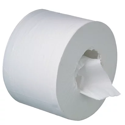 Bobine de papier toilette en ouate blanche, 2 épaisseurs.