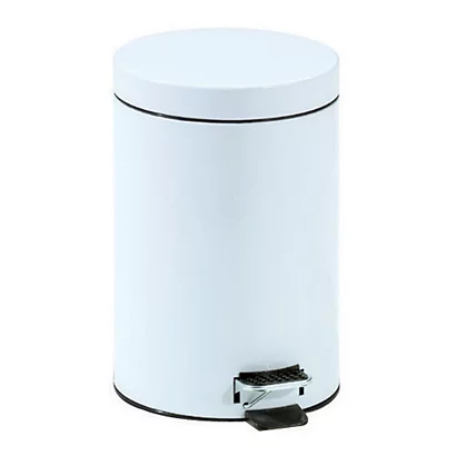 Poubelle à pédale en acier poudré époxy blanc très robuste.