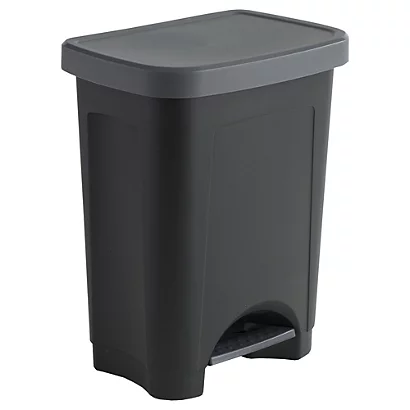 Coloris noir pour le corps de la poubelle et gris clair pour le couvercle et la pédale.