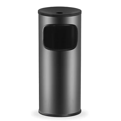 Avec tête étouffoir pour éviter la propagation des fumées de cigarettes. Ouverture de la poubelle en face avant, s’utilise comme fourre-tout.