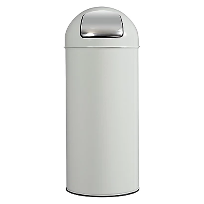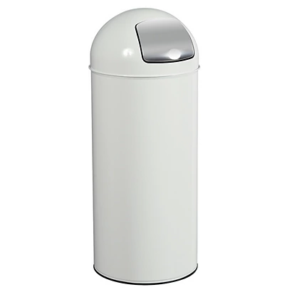 Coiffe semi-sphérique et trappe en inox. En acier poudré anti – UV, bonne résistance à la corrosion. Bonne stabilité et protection des sols grâce au joint de caoutchouc inférieur. Trappe inox avec retour automatique. Avec étrier de maintien du sac plastique. Corps 45 L blanc RAL 9016. Dim. : diam. 31 x H. 78 cm. Poids : 3,2 kg.