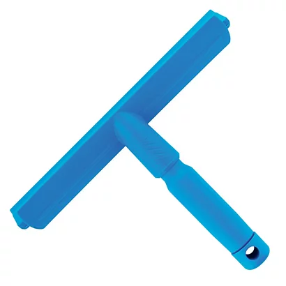 Idéal pour racler les plans de travail inox en mileu alimentaire. Cette raclette peut être passée au lave-vaisselle pour son entretien et peut également être stérilisée à 121°C. En polypropylène. dim. : 200 x 270 mm. Coloris bleu.