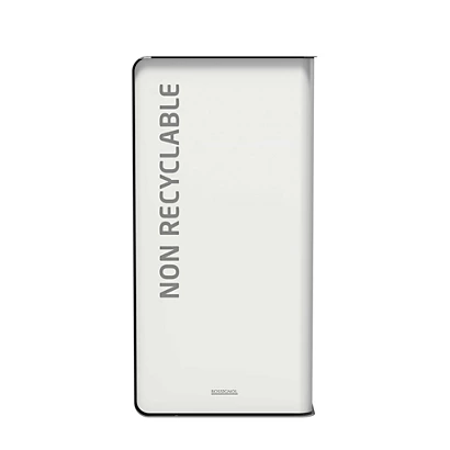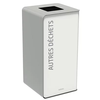 Acier poudré anti-UV Système d’ouverture push/pull grâce à son loqueteau mécanique Porte à ouverture frontale ‘push’ sérigraphiées Ouverture calibrée (170×170 mm) et identification du type de tri Support sac intégré en inox AISI 304 18/10 sur glissière en acier zingué Pieds réglables pour les sols irréguliers