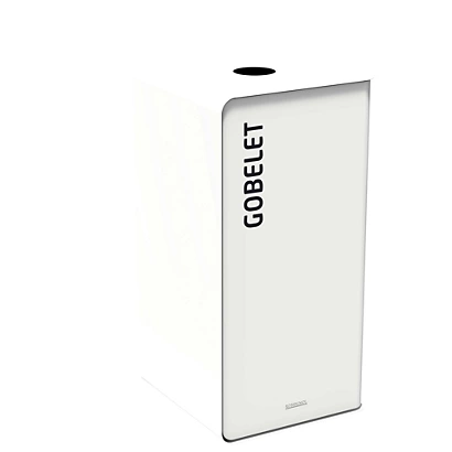 Acier poudré anti-UV Système d’ouverture push/pull grâce à son loqueteau mécanique Porte à ouverture frontale ‘push’ sérigraphiées Ouverture calibrée (diamètre 90mm) et identification du type de tri Support sac intégré en inox AISI 304 18/10 sur glissière en acier zingué Pieds réglables pour les sols irréguliers