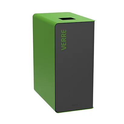 Acier poudré anti-UV Système d’ouverture push/pull grâce à son loqueteau mécanique Porte à ouverture frontale ‘push’ sérigraphiées Ouverture calibrée (120×120 mm) et identification du type de tri Support sac intégré en inox AISI 304 18/10 sur glissière en acier zingué Pieds réglables pour les sols irréguliers