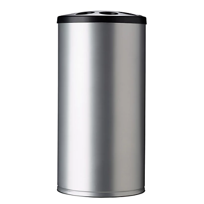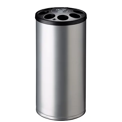 Corps en acier poudré avec embase caoutchouc Tête polyéthylène avec réceptacles pour gobelets (capacité : 1600 gobelets, Ø inférieur ou égal à 70 mm) + trous pour agitateursSignalétique intégrée Solution pour le tri sélectif Spécial “Zone de pause“
