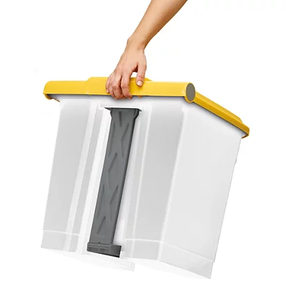 Fabriquée en polyrpopylène, la poubelle est résistante et facile à entretenir.