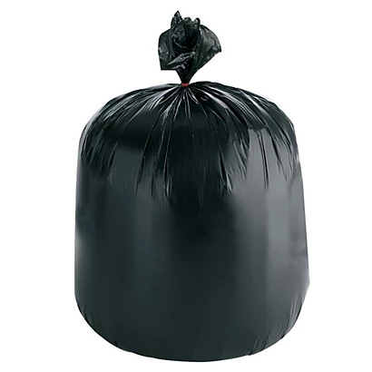 Carton de 500 sacs noirs 50 L. Épaisseur 14 microns, hauteur 74 cm, Ø 43 cm, largeur 68 cm.