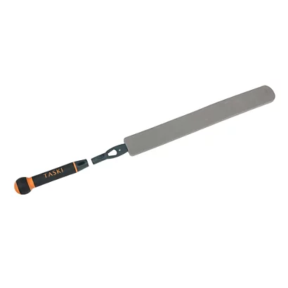 Le support peut être détaché de sa poignée et se fixe en un clic sur le manche télescopique, afin de permettre une allonge encore plus grande si nécessaire.