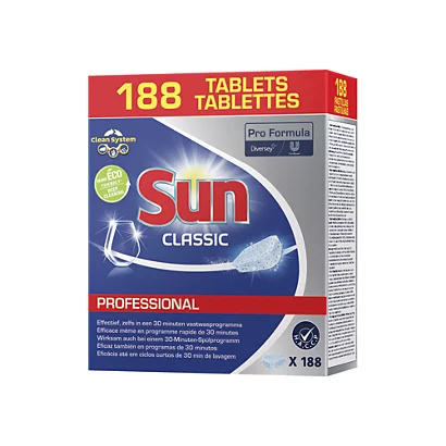 Les tablettes Sun Pro Formula Classic assurent un dégraissage parfait de la vaisselle et une brillance irréprochable grâce à leur formule très performante contenant des agents alcalins.